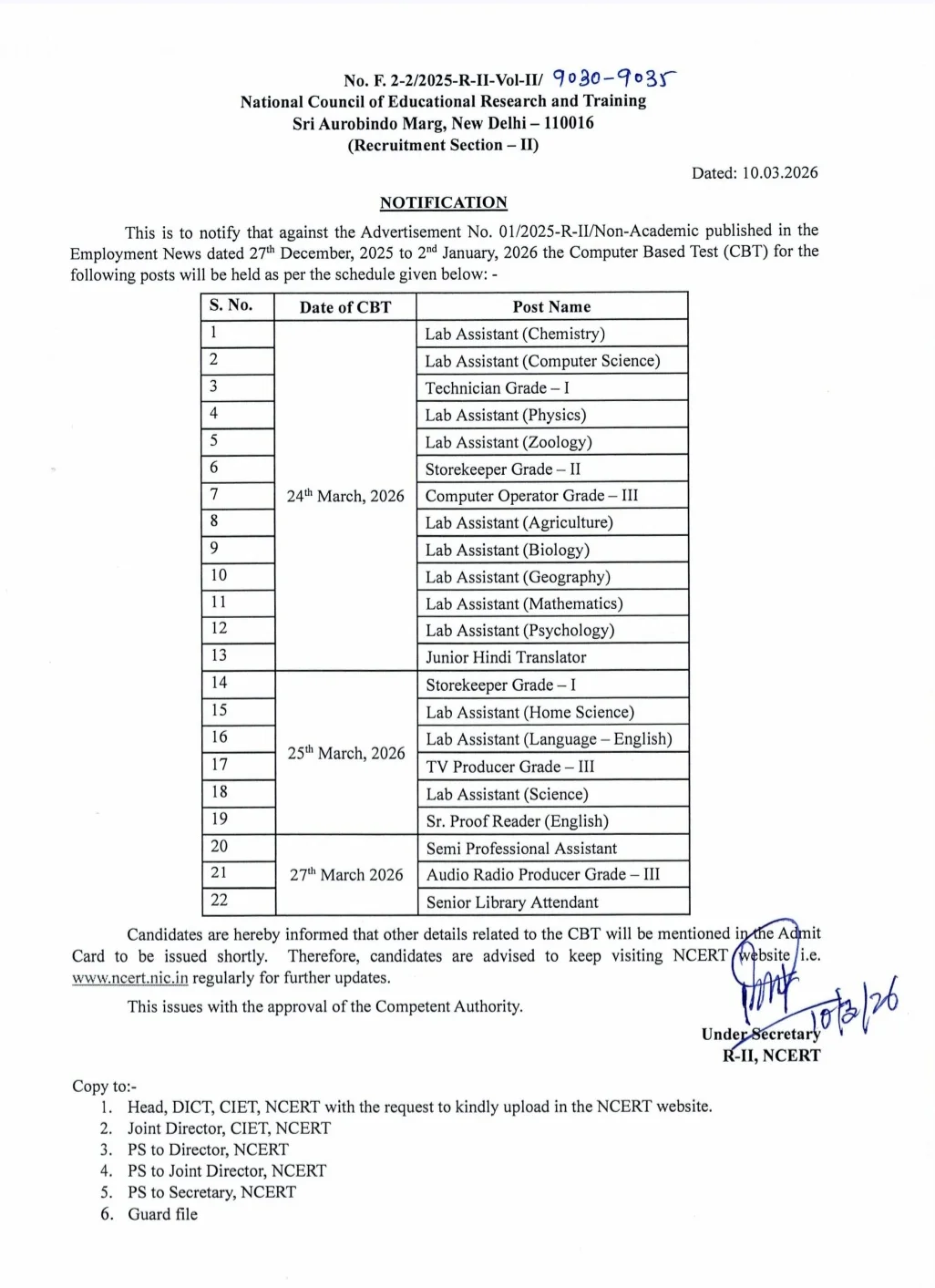 The NCERT Non-Teaching Examination is scheduled as follows: