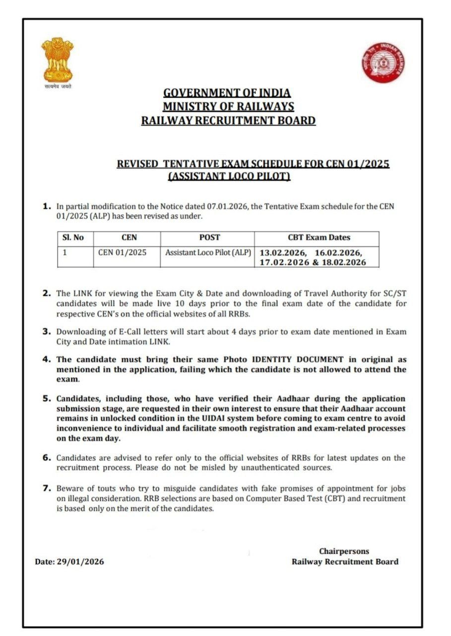 🗓️ RRB ALP Exam Date 2026