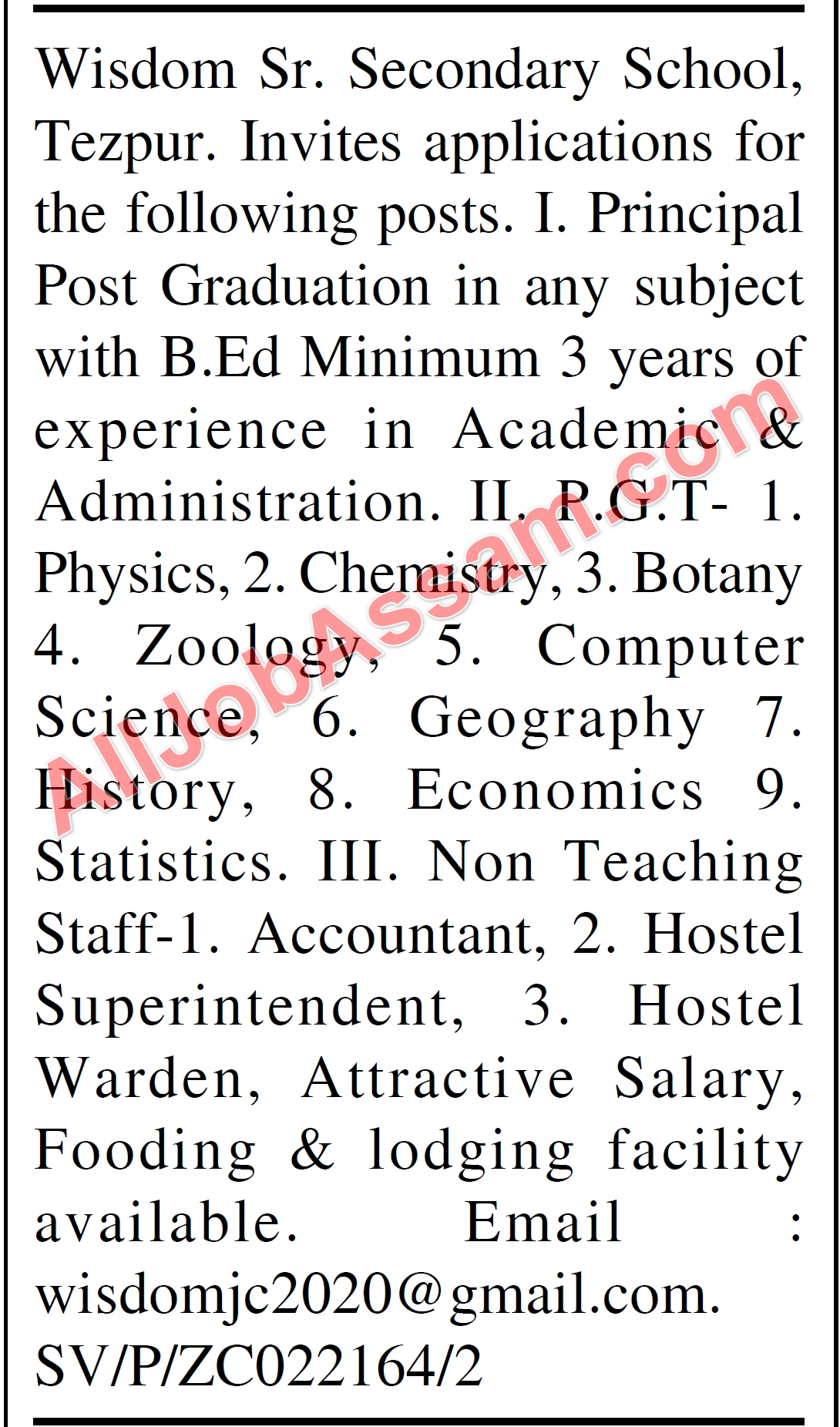 Job Opportunities at Wisdom Sr. Secondary School, Tezpur | Apply Now